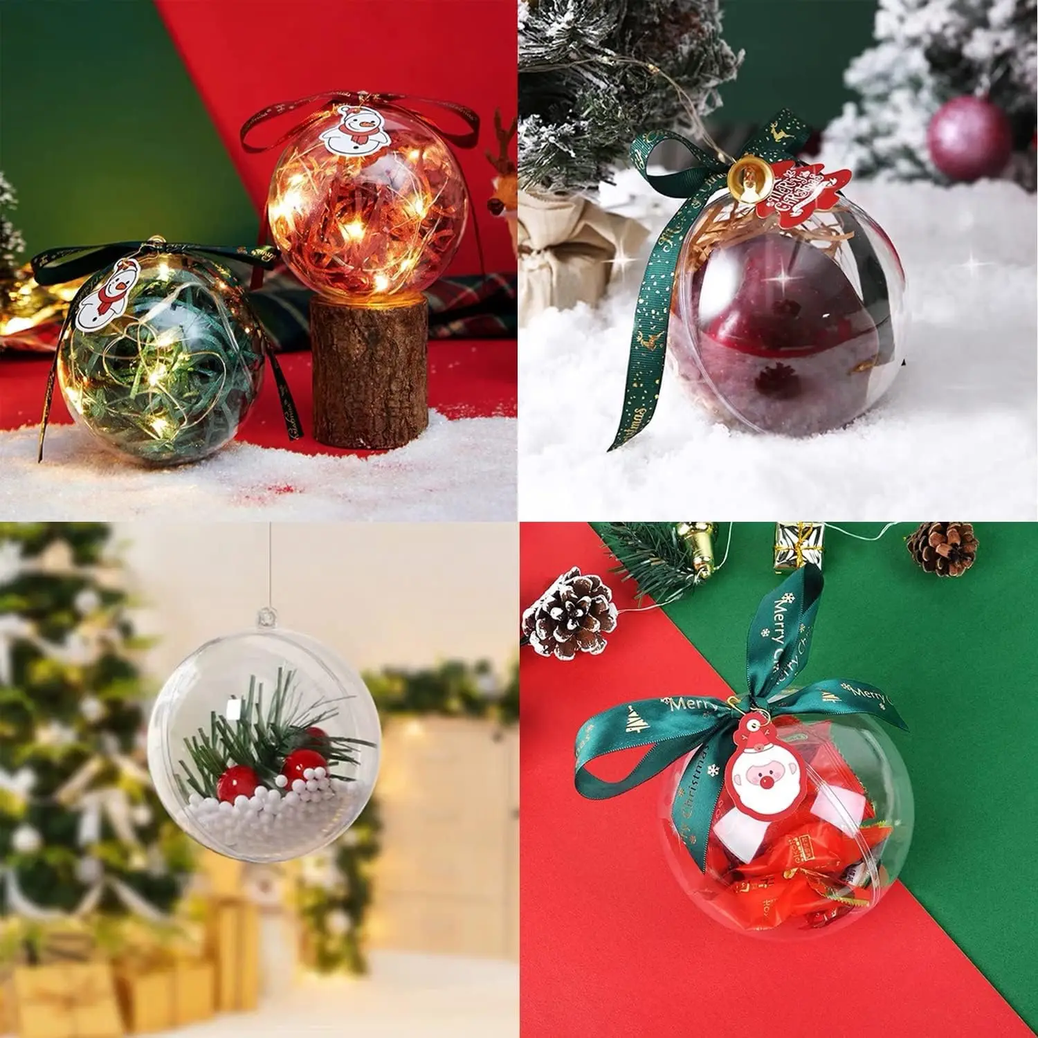 1/12Pcs DIY Hollow Balls Christmas Plastic Transparent Fillable Bauble Xmas Tree Hanging Ornaments Home Party Gifts Box Decor