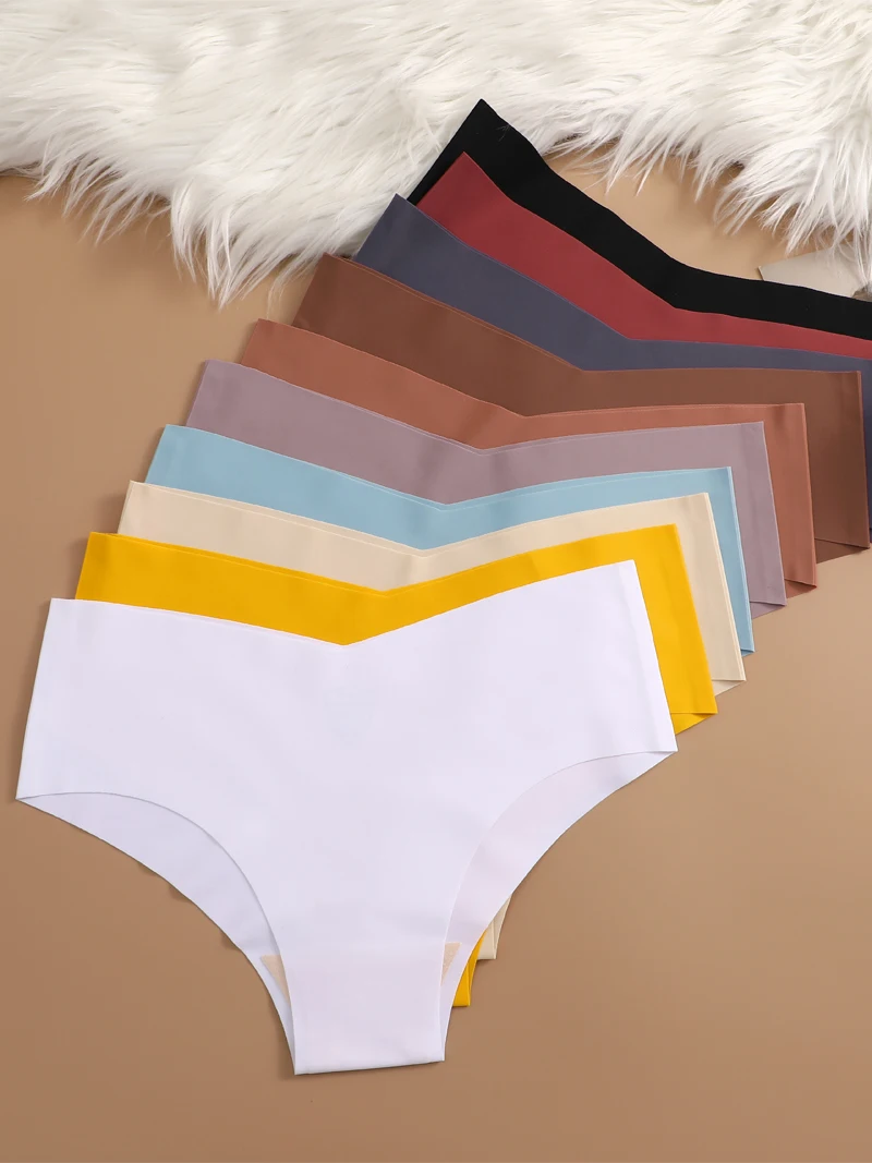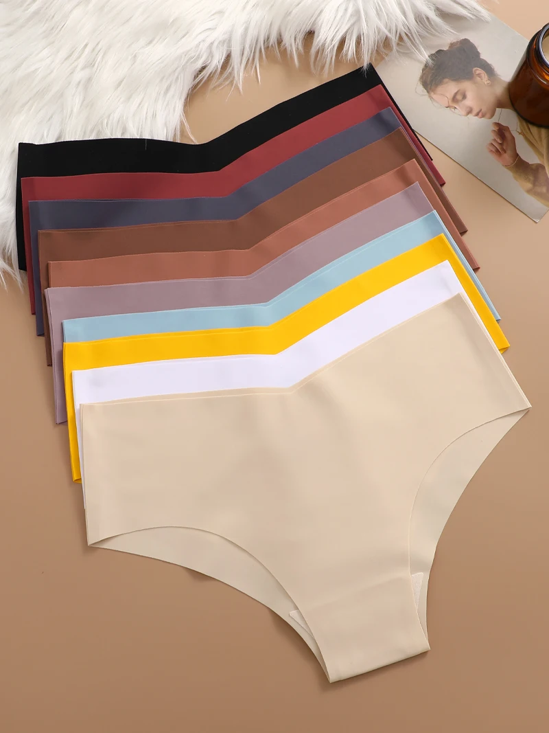 10pcs Hot Sale Women’s Panties Seamless Underwear Ultra-thin Solid Briefs Female V-Waist 10 Colors panty Silk Lingerie Wholesale