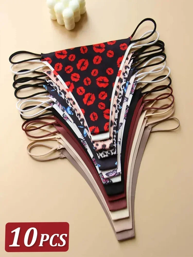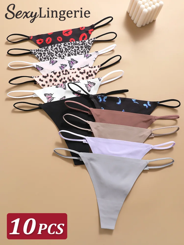 10Pcs/Set Women Seamless Thongs T-back Thin Strap Low Waist High Flexibility Panties Sexy Underwear Ladies Briefs Women