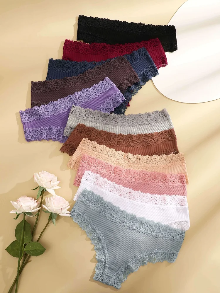 11PCS Women Lace Cotton Panties Seamless Brazilian Panties Sexy Low-Waist T-Back Bikini Female Breathable Underwear Lingerie