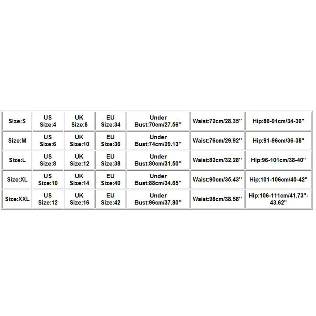 | Size | US Size | UK Size | EU Size | Under Bust | Waist | Hip |