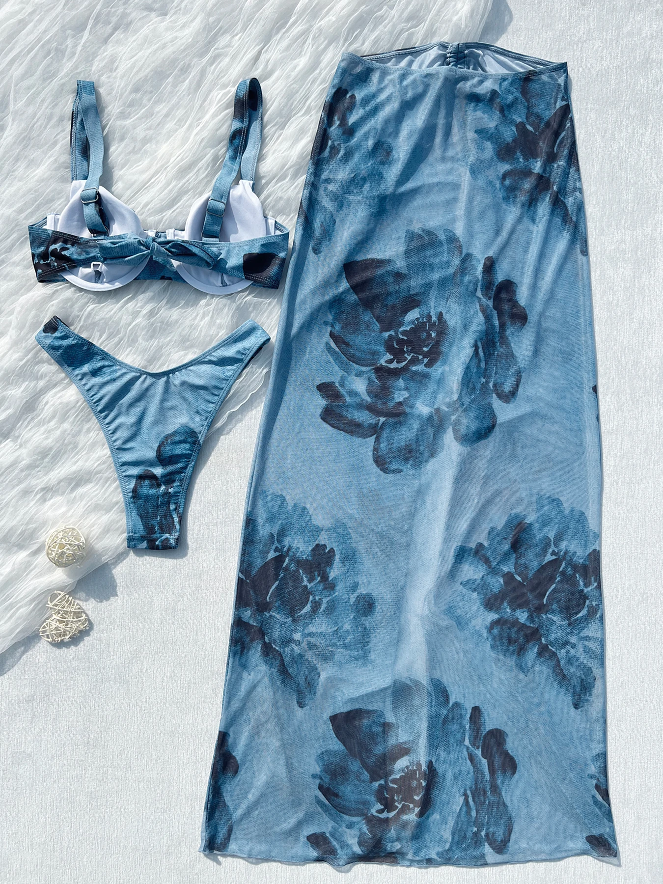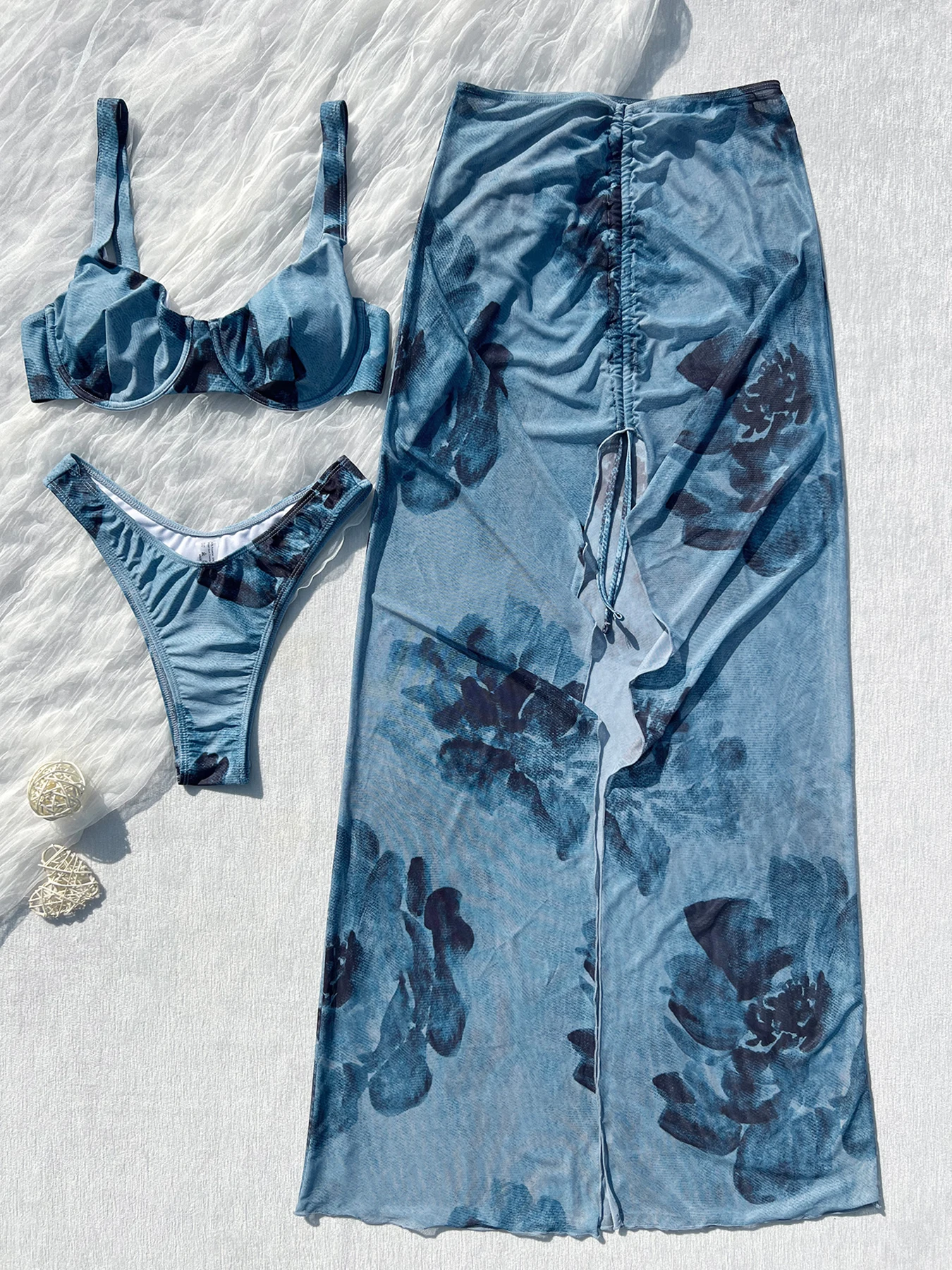2025 New Print Three Pieces Bikini Sets Swimsuit For Women Push Up Swimwear Female Bikini And Beach Skirt Bathing Suit Beachwear