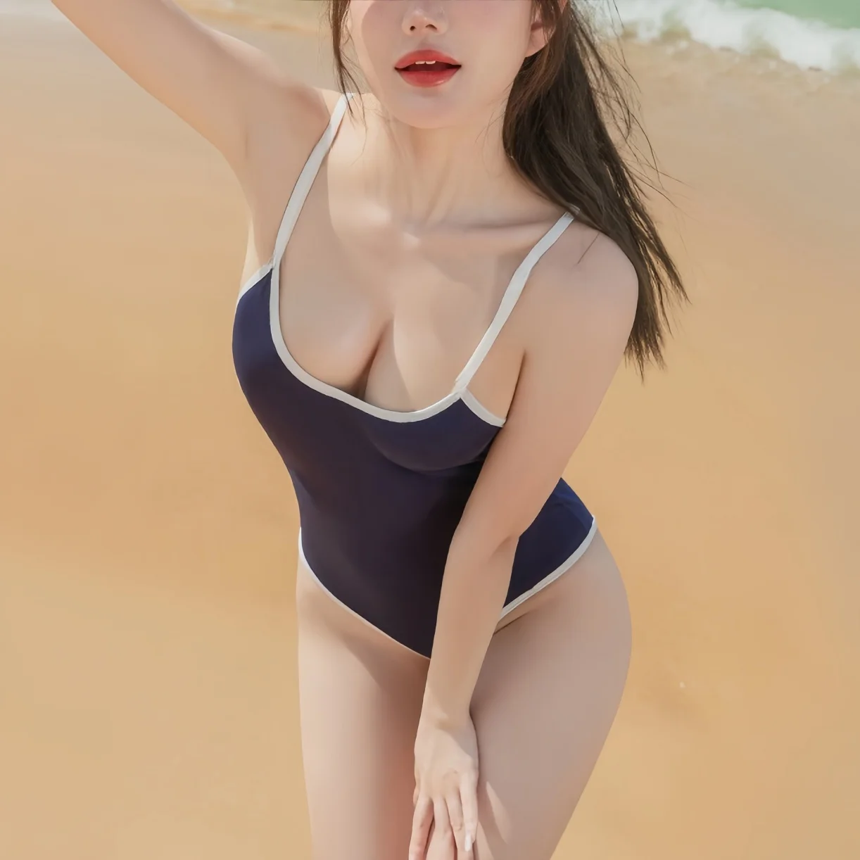 Featuring a monochrome pattern and Japanese style, this one-piece swimsuit adds a touch of elegance to your beachwear.