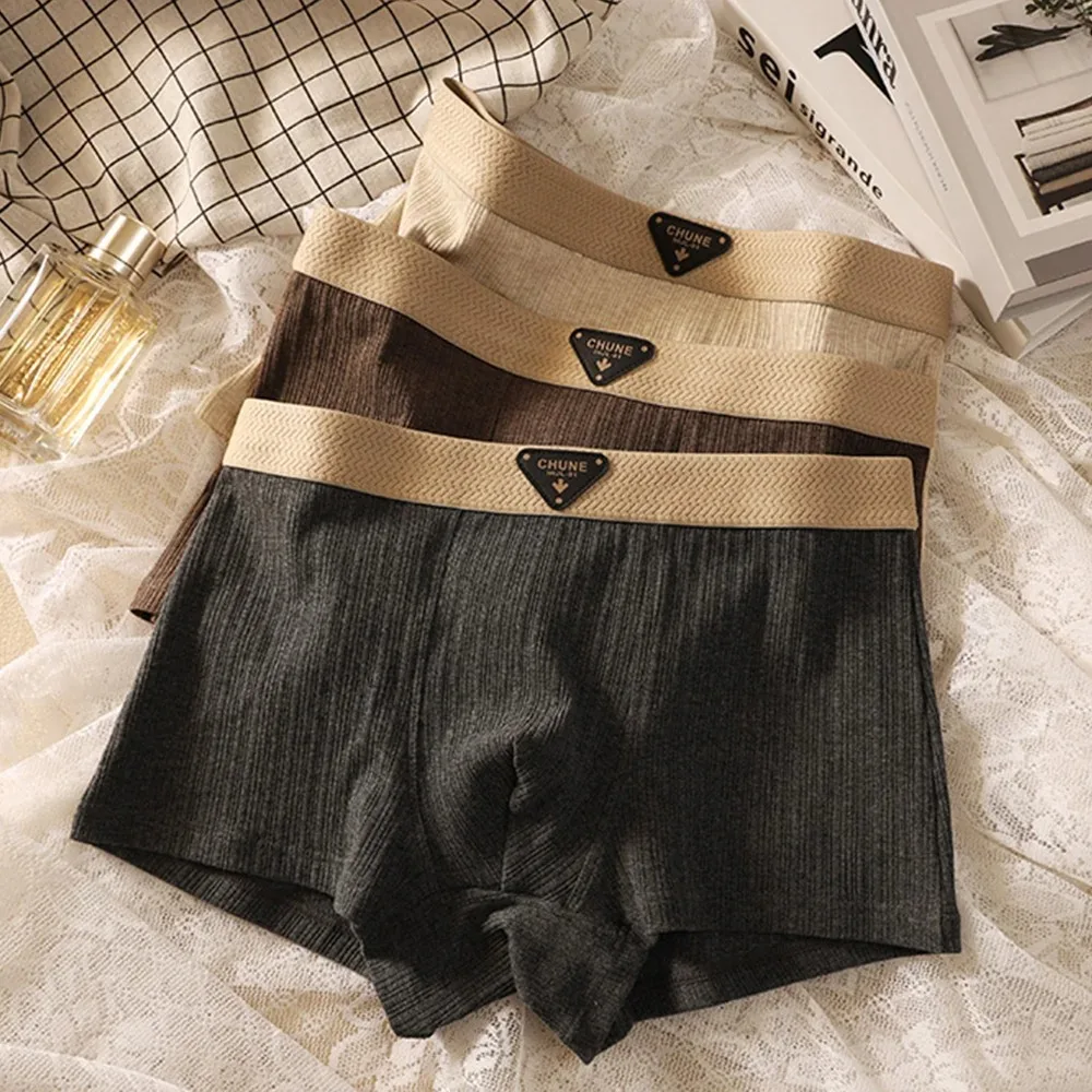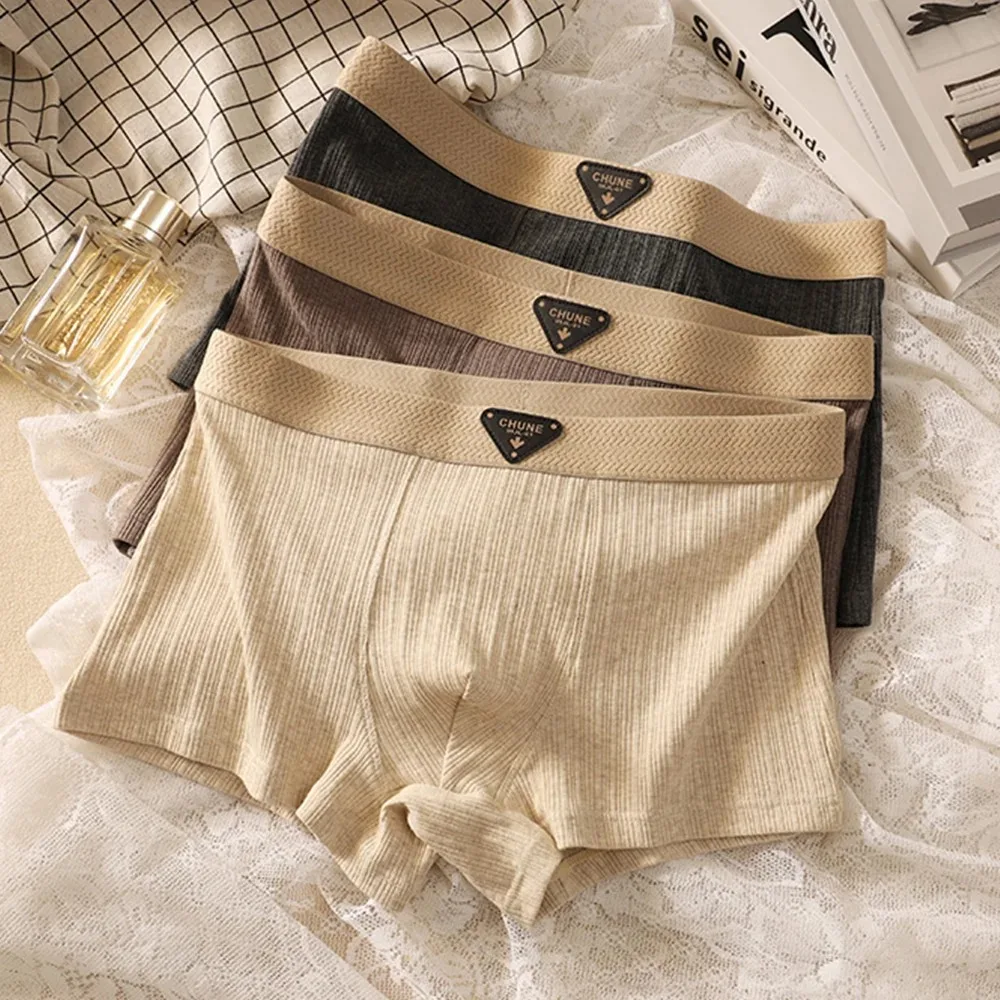 3 pcs Men’s Cotton Underpants Solid Striped Underwear Men’s Panties Boxer Shorts High Elastic Wiast Underwear for Man