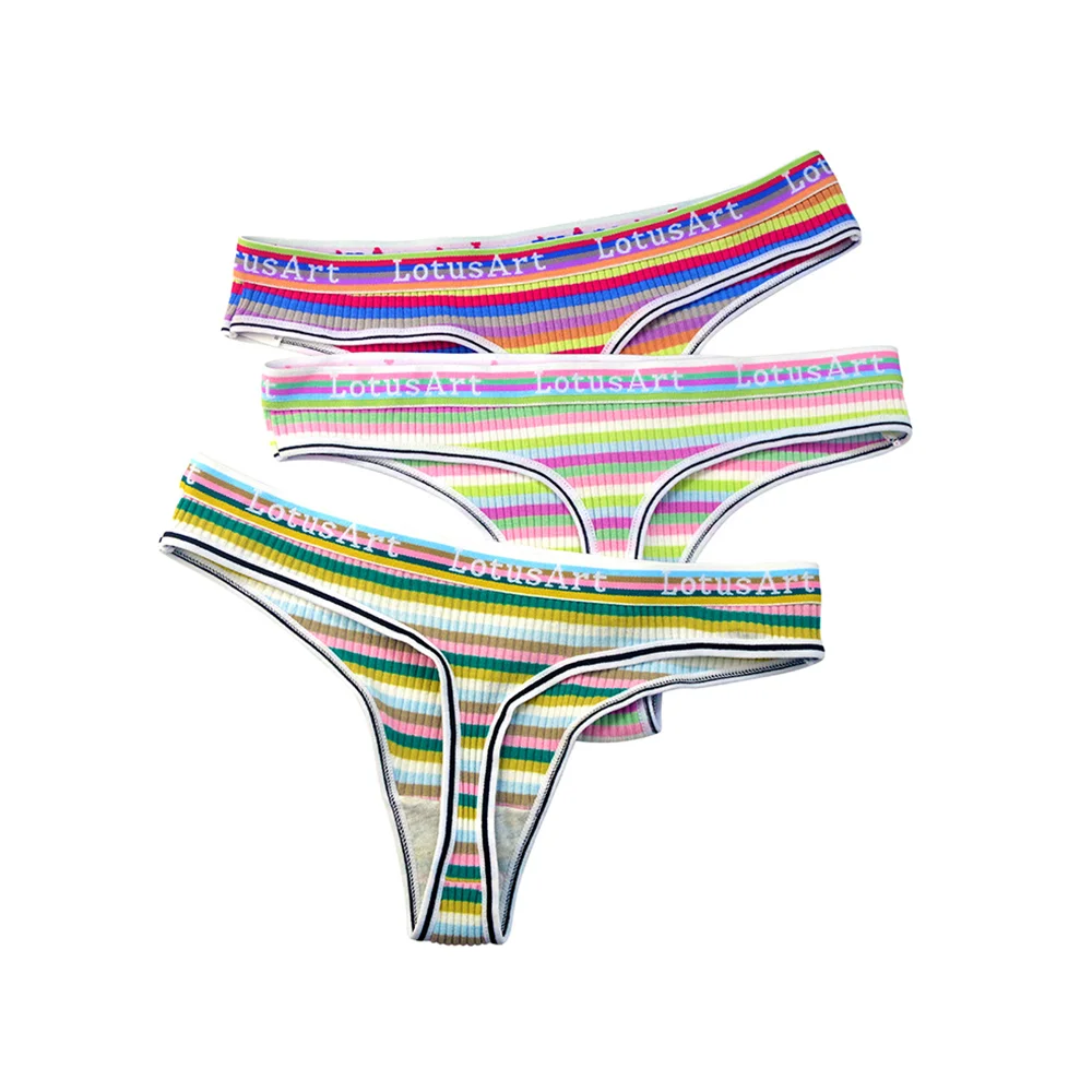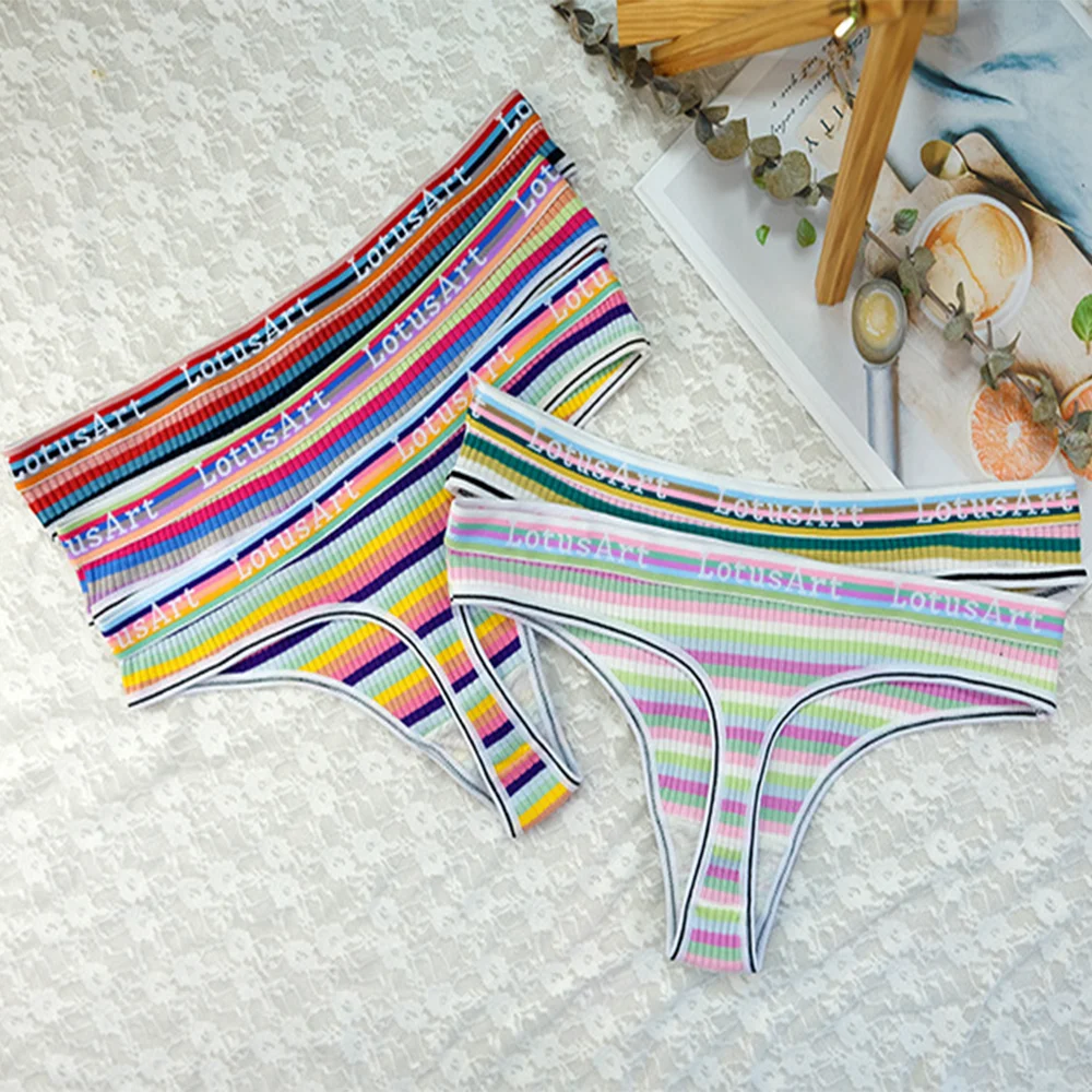 4Pcs Women’S Cotton Fabric Thongs Panties Female Striped Low Rise G-String Ladies Sexy Bikini Solid Color Soft Intimates M-2XL