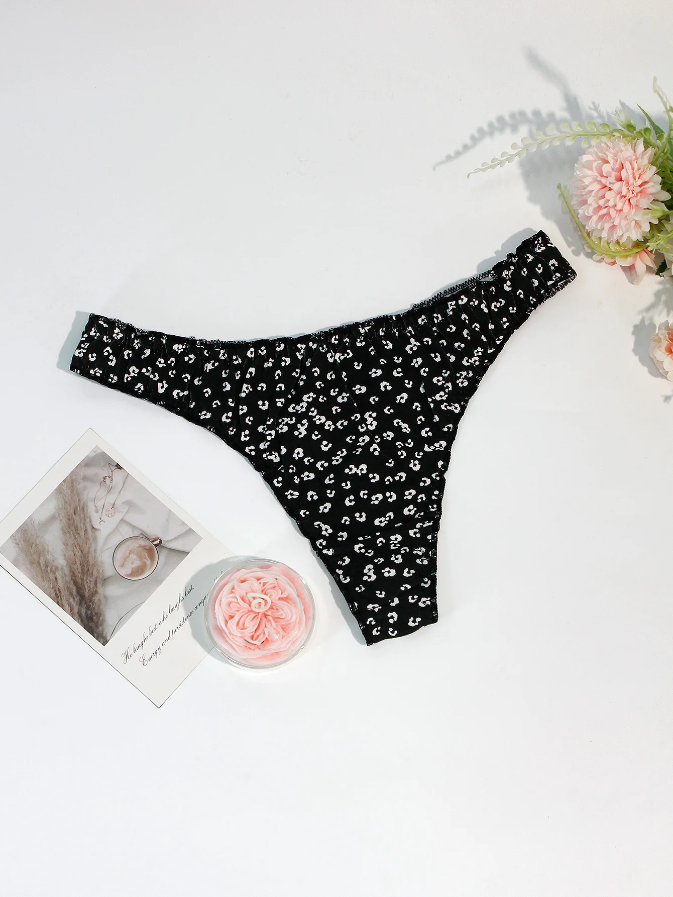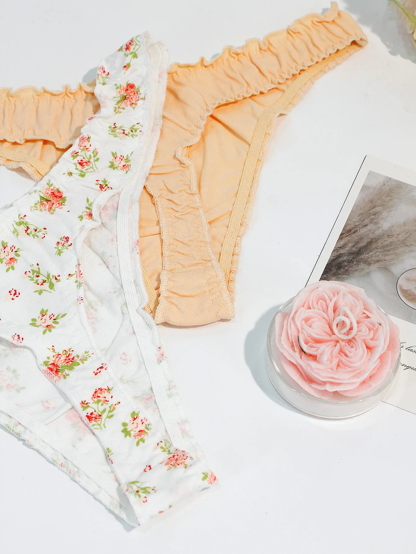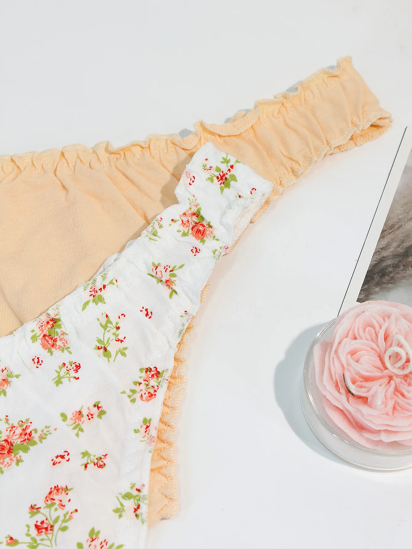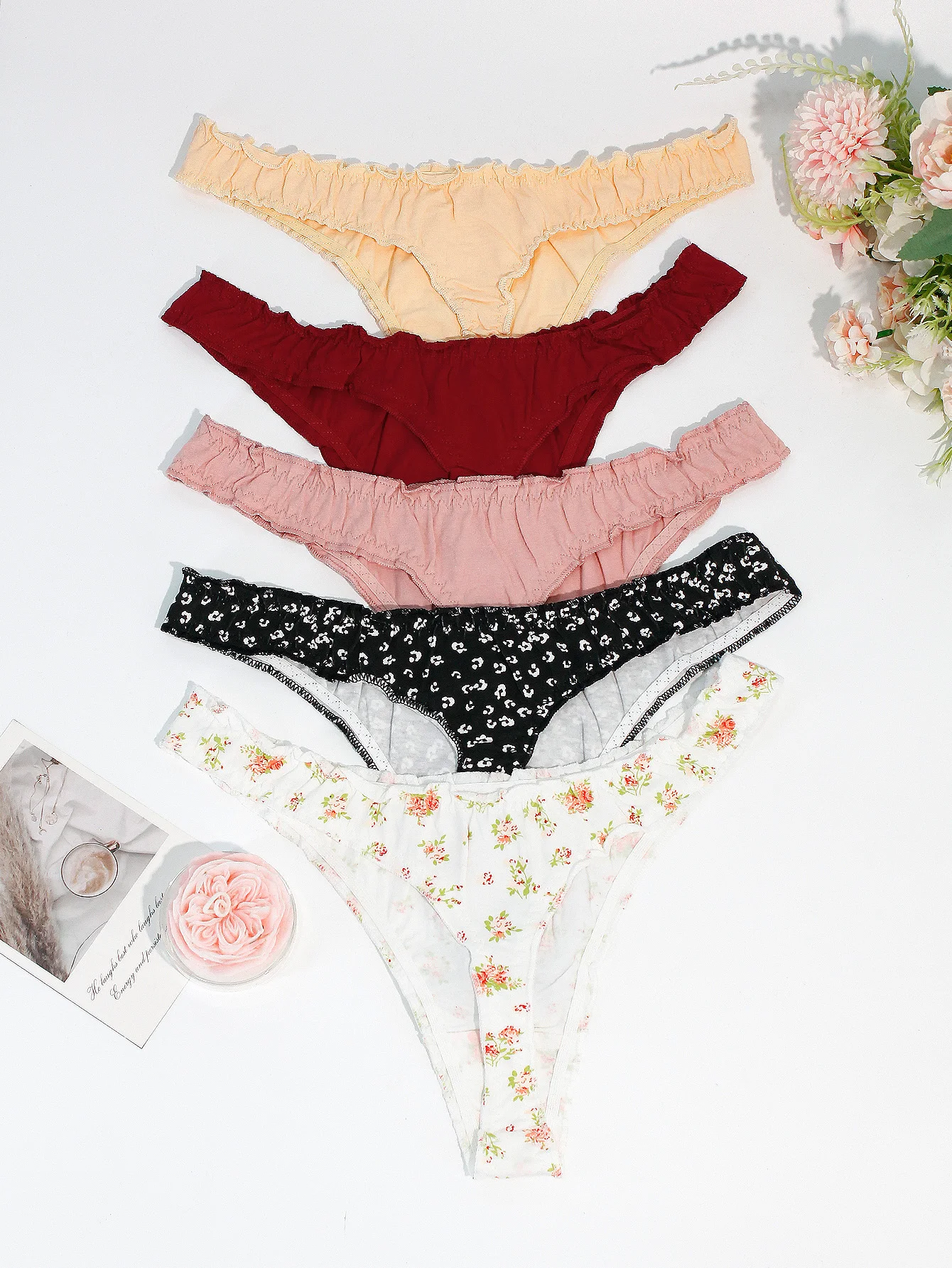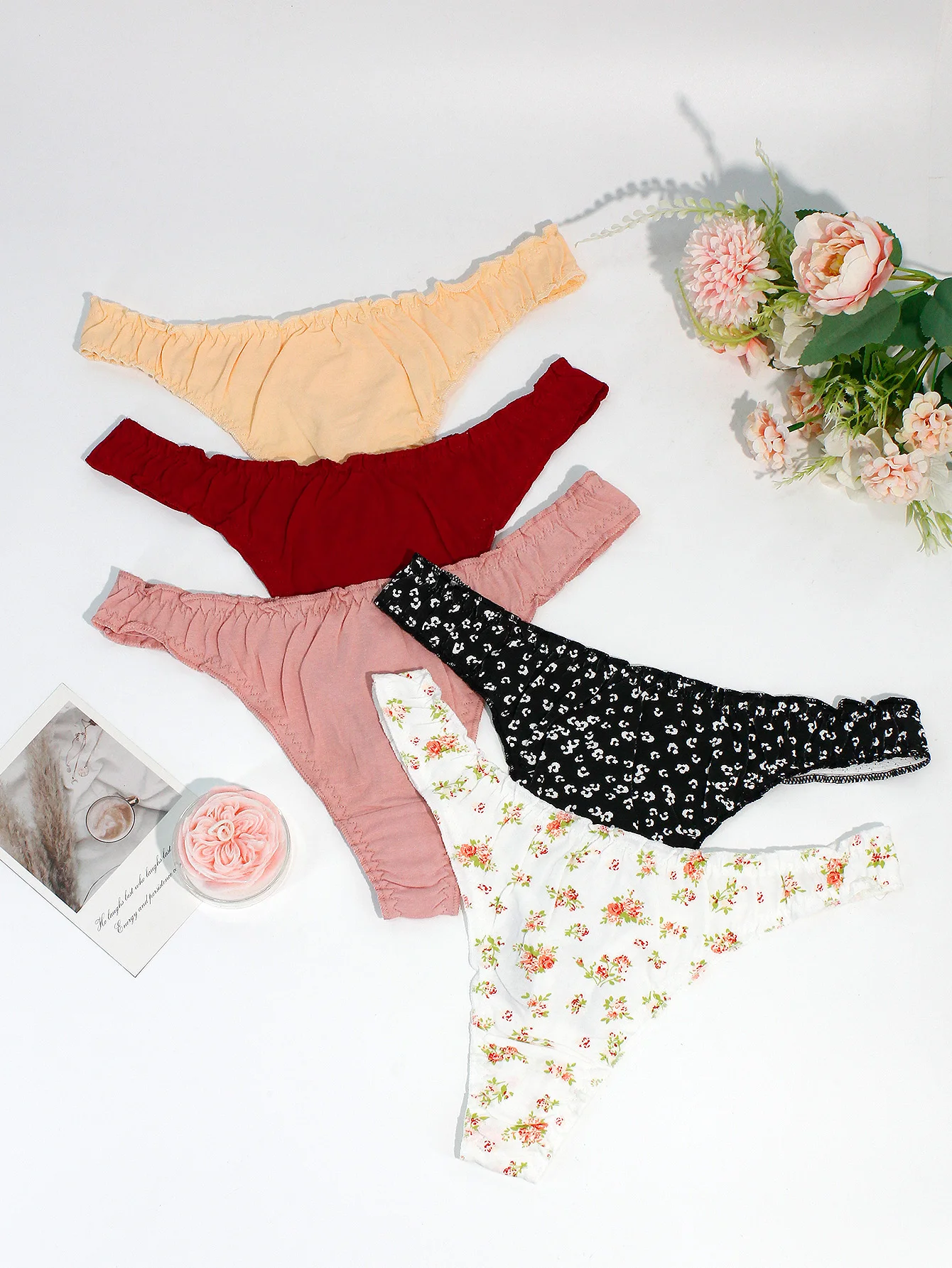 5-Pack Floral Ruffled Sexy Women’s Thong Underwear Comfortable Seamless Cotton Girls’ Briefs