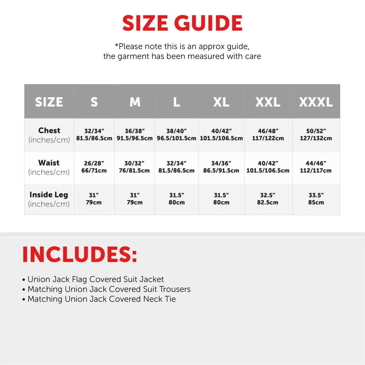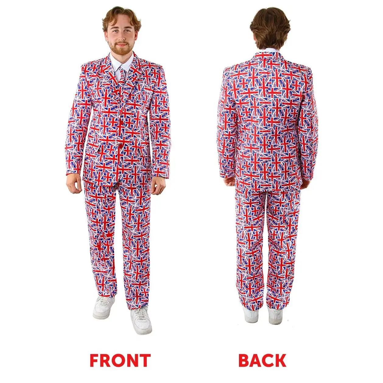 AVAILABLE IN MULTIPLE SIZES: These Adults Union Jack Suits are available in sizes Small to XXX-Large