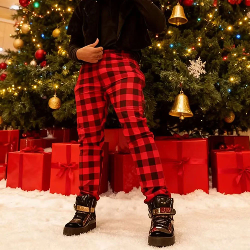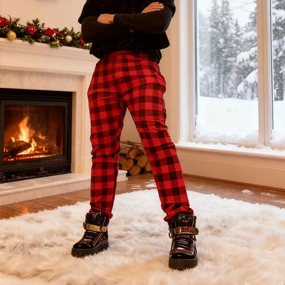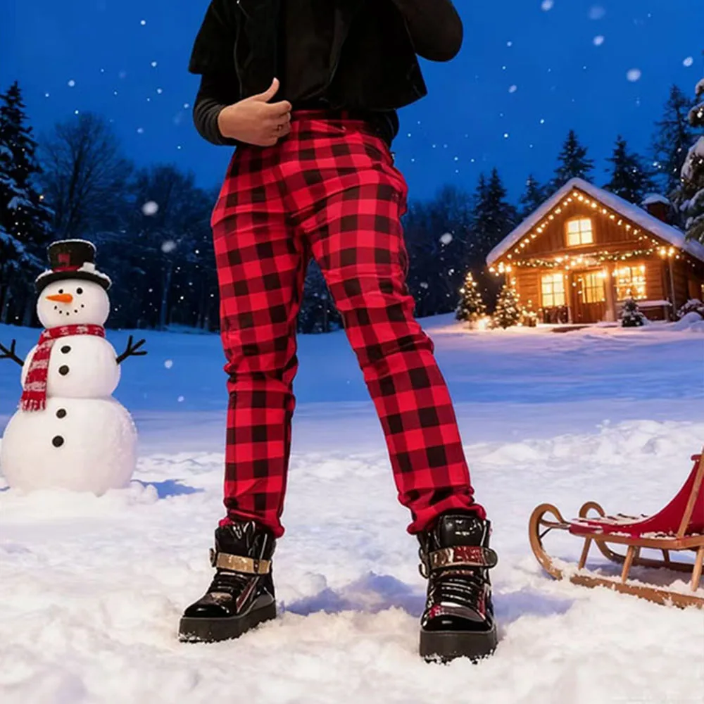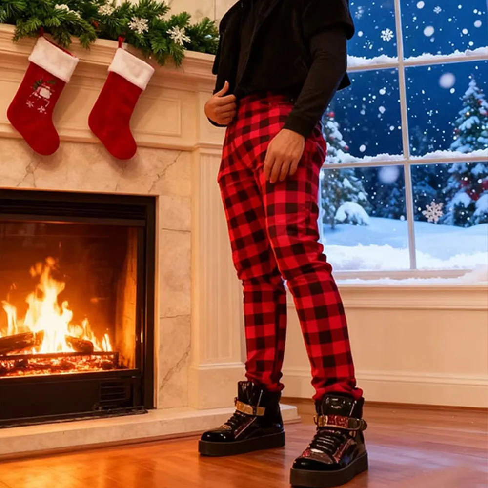 Feature a classic Christmas plaid pattern in festive colors, instantly elevating your holiday look. Whether for Christmas parties, family gatherings, ugly sweater events or casual outings, these jeans help you stand out with a cheerful and stylish vibe that fits the holiday spirit.