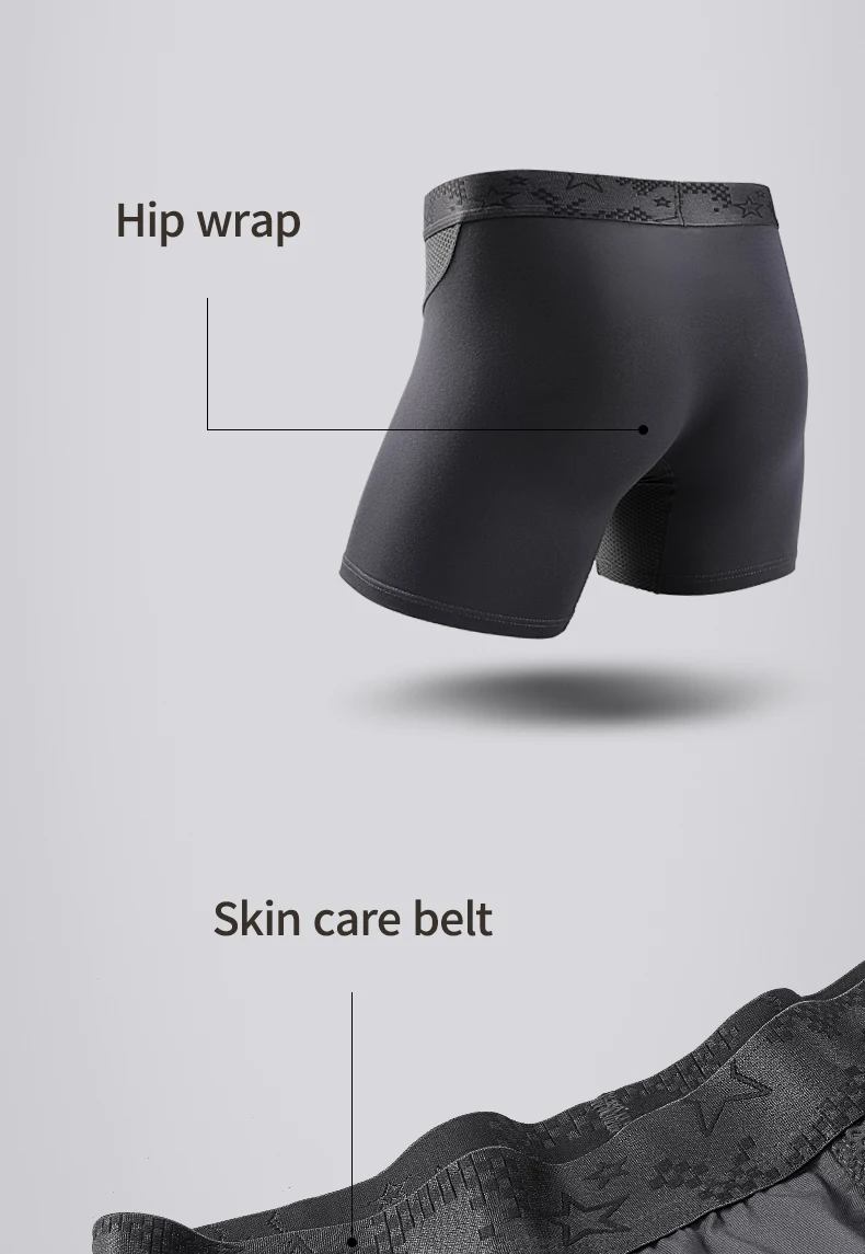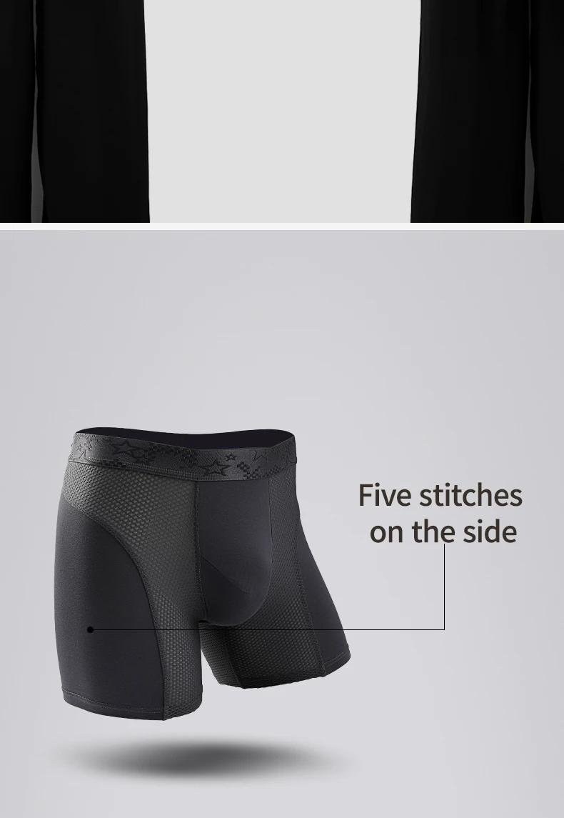 Extra Long Sports Underwear Men’s Boxer Briefs Anti-Wear Leg Running Large Size Breathable Training Boxer Briefs
