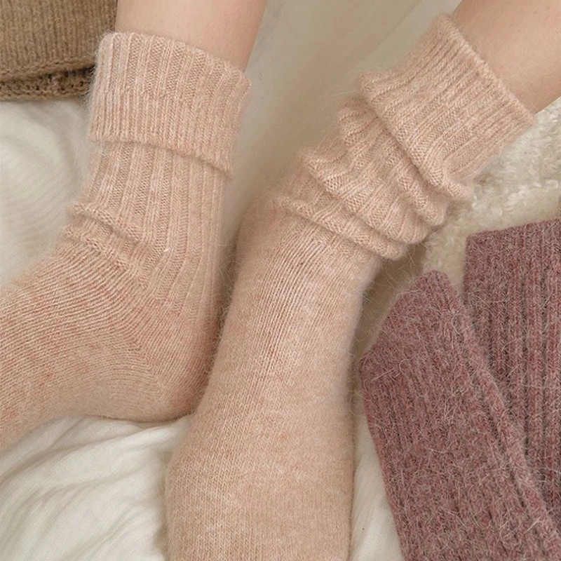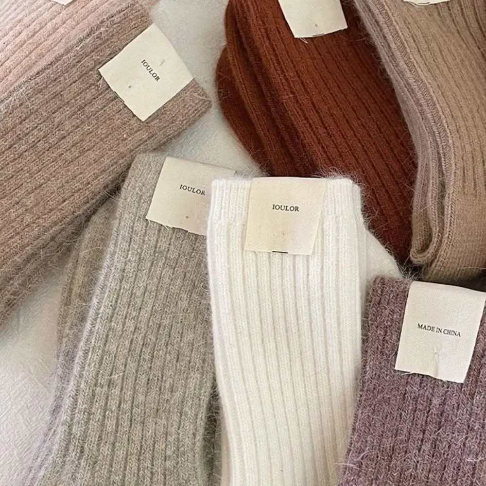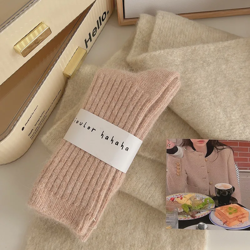 Fashion Cashmere Winter Warm Velvet Socks Thermal Thick Mid Tube Socks Stripes Long Socks For Women