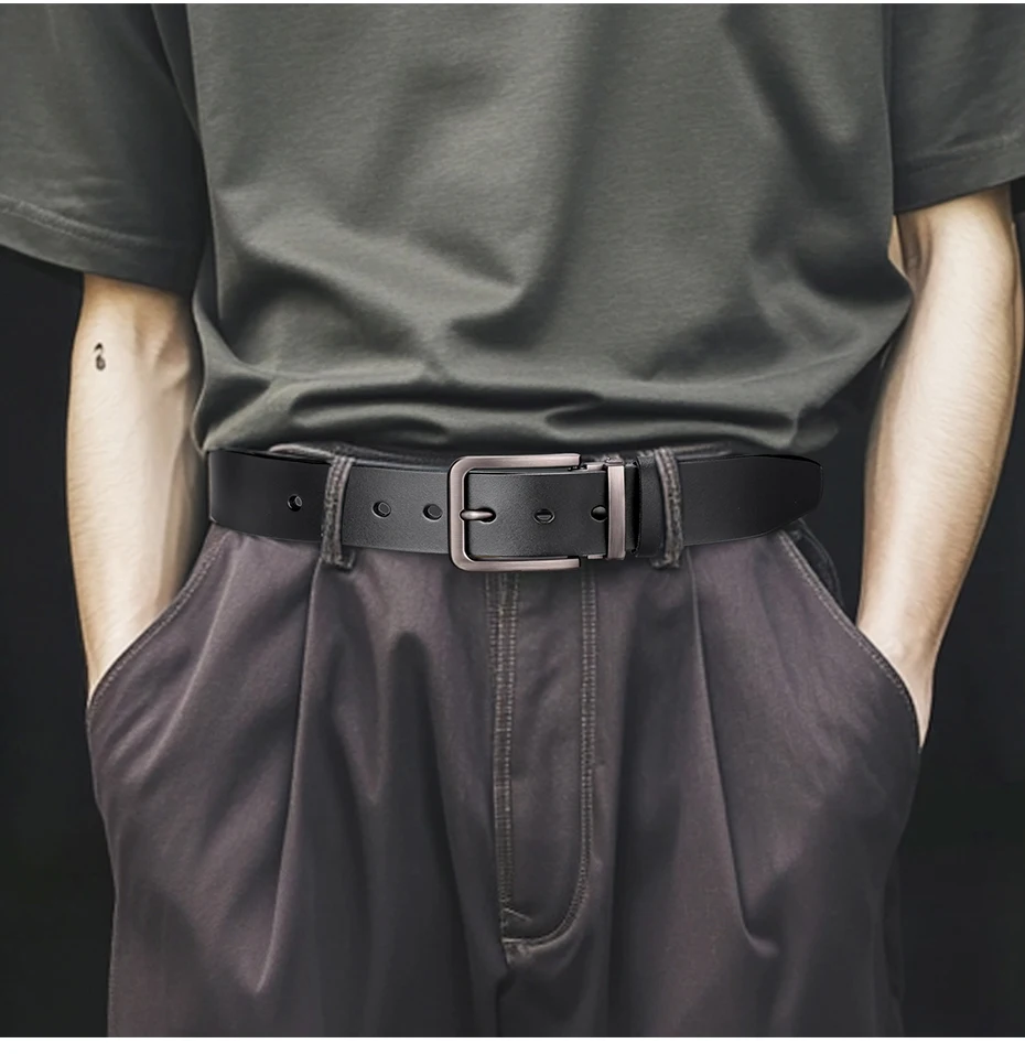 Maikun Genuine Leather Men’s Belt Large Size Casual Belt Alloy Pin Buckle Business Suit Belt Father’s Day Present Gift