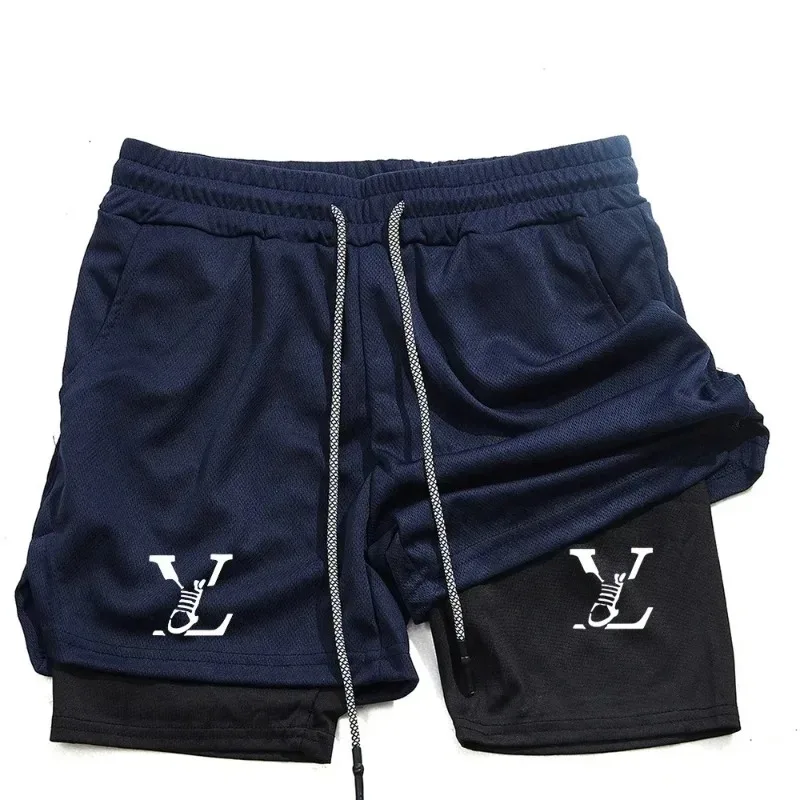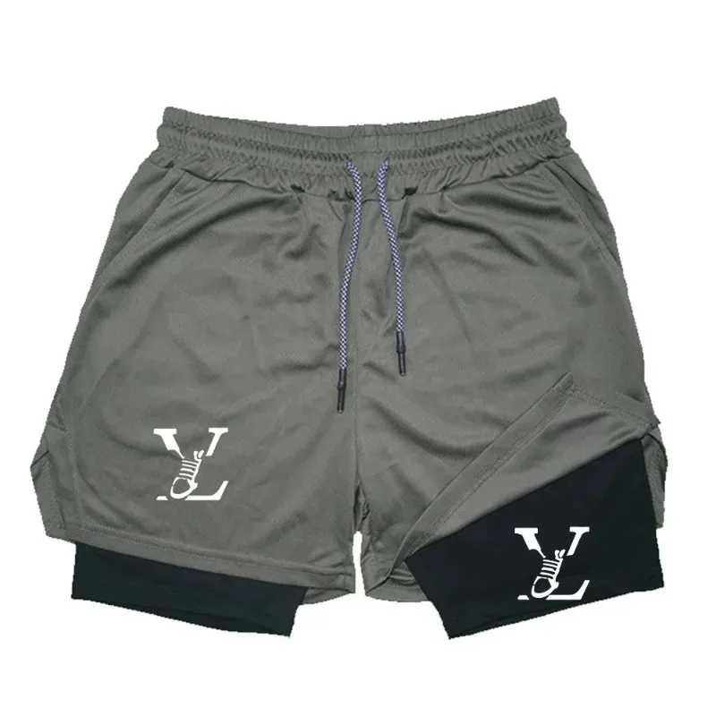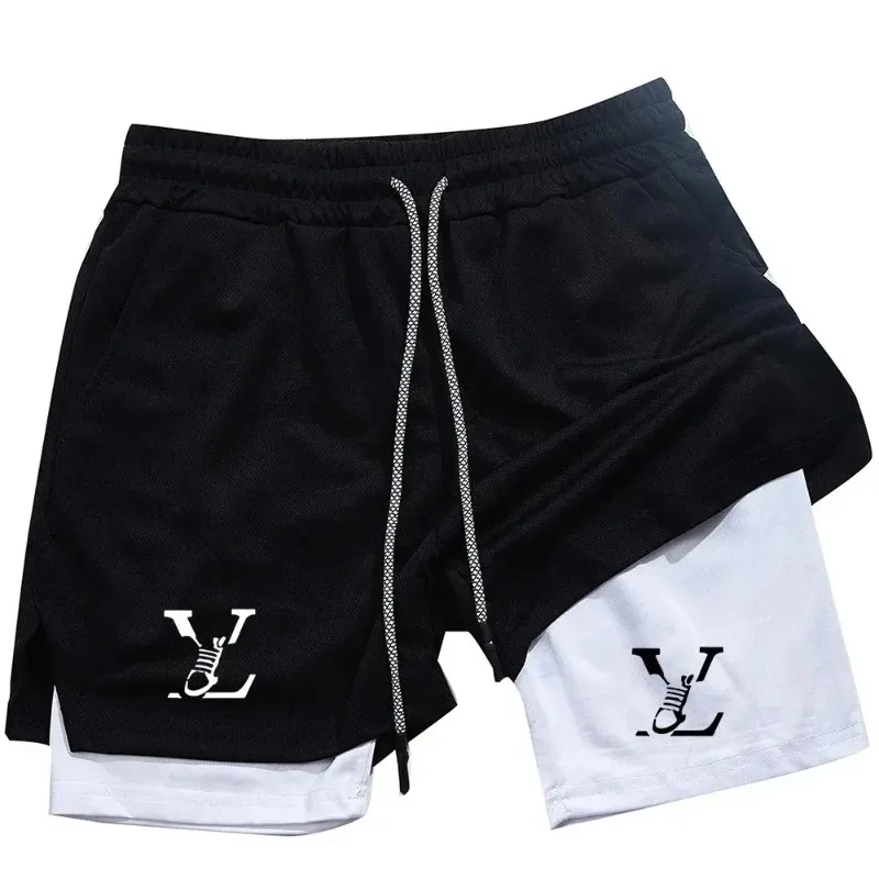 New Print Double Layer Shorts Men’S Summer Gym Fitness Running Training Breathable 2 In 1 Sports Casual