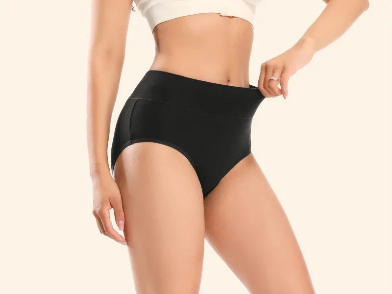Soft stretchy double-layer covered waistband sits right at the belly button. No rolling or bunching, with no compression, perfectly snug but not tight, durable and stretchy but not easy to be deformed, the high rise underwear offers moderate tummy support and reduces the appearance of muffin top.