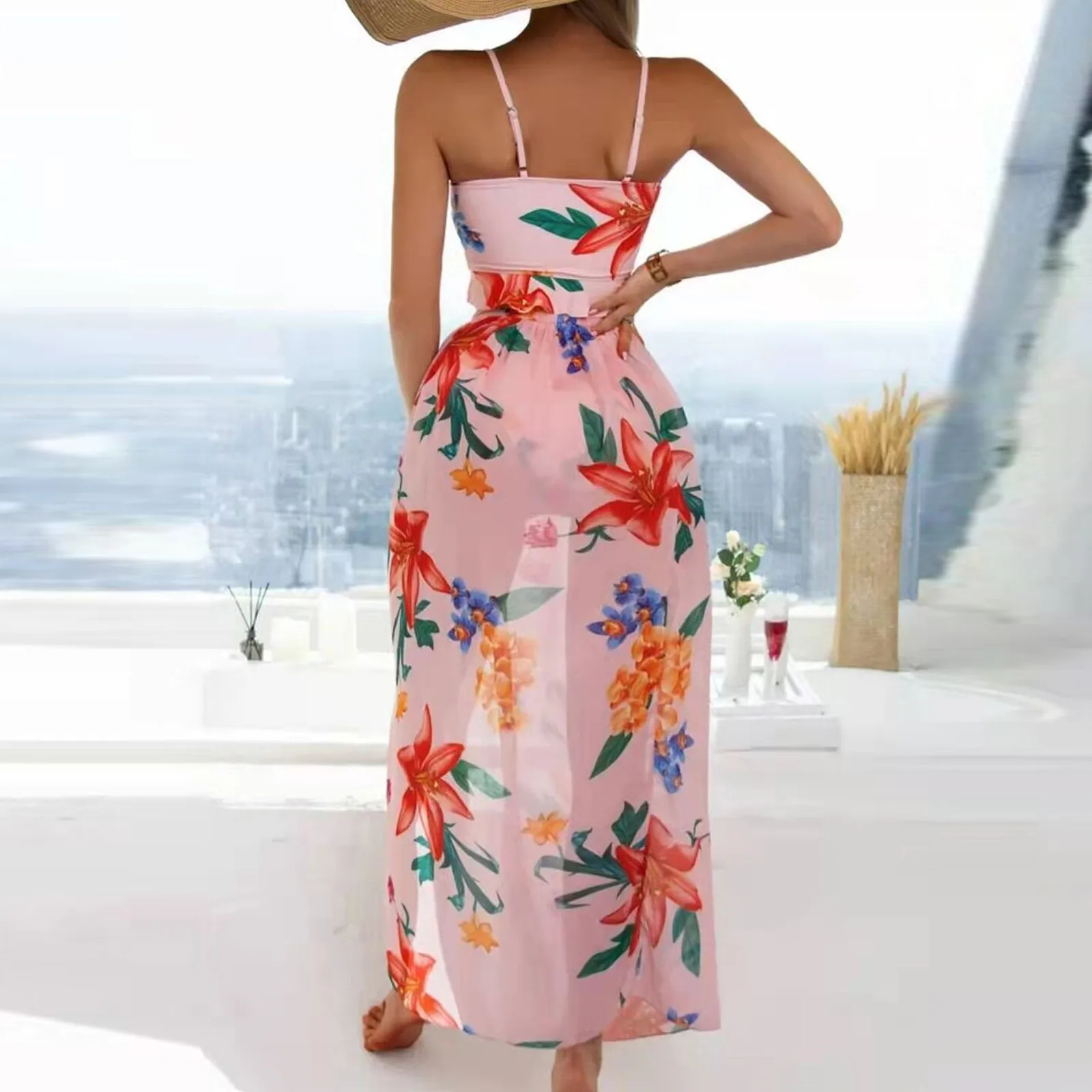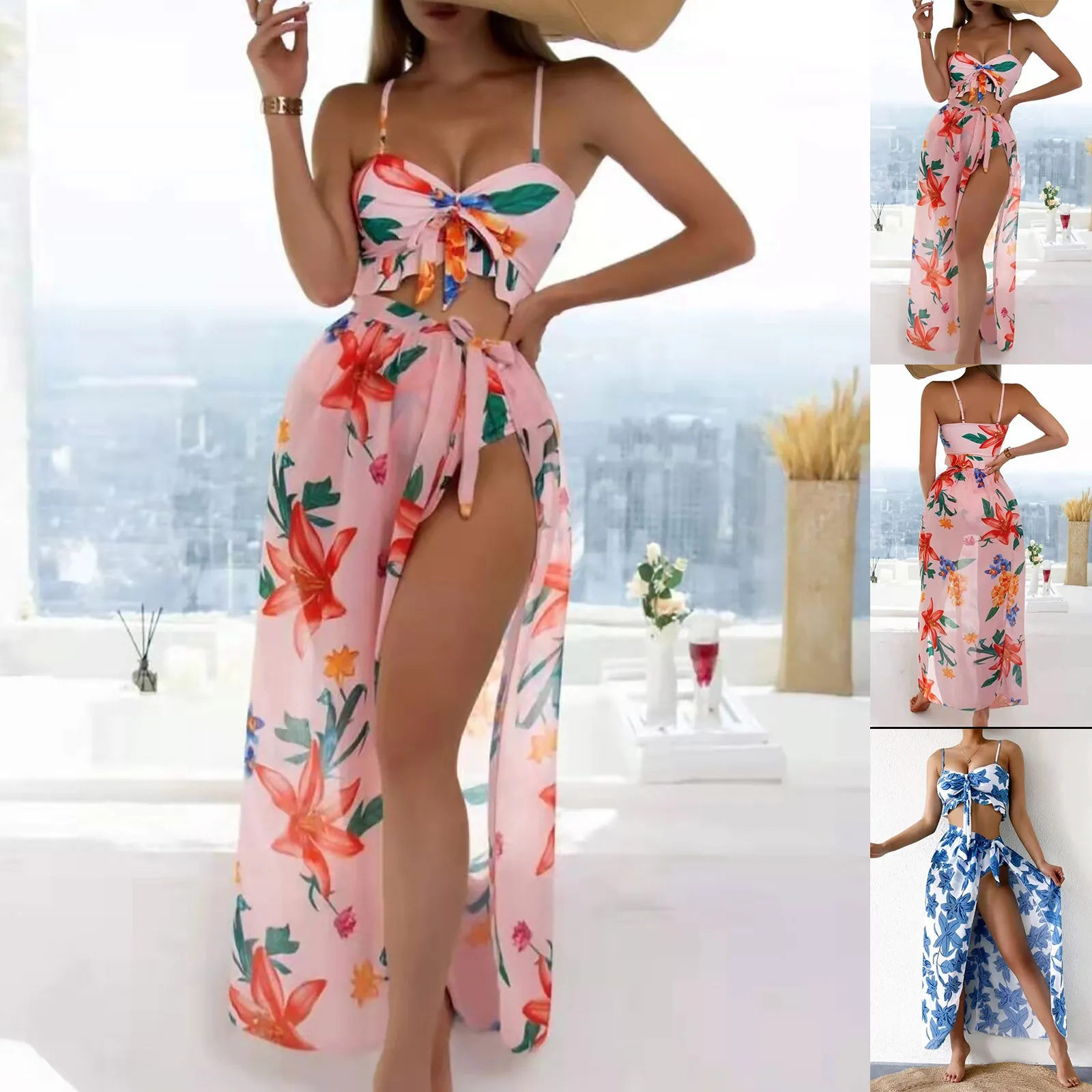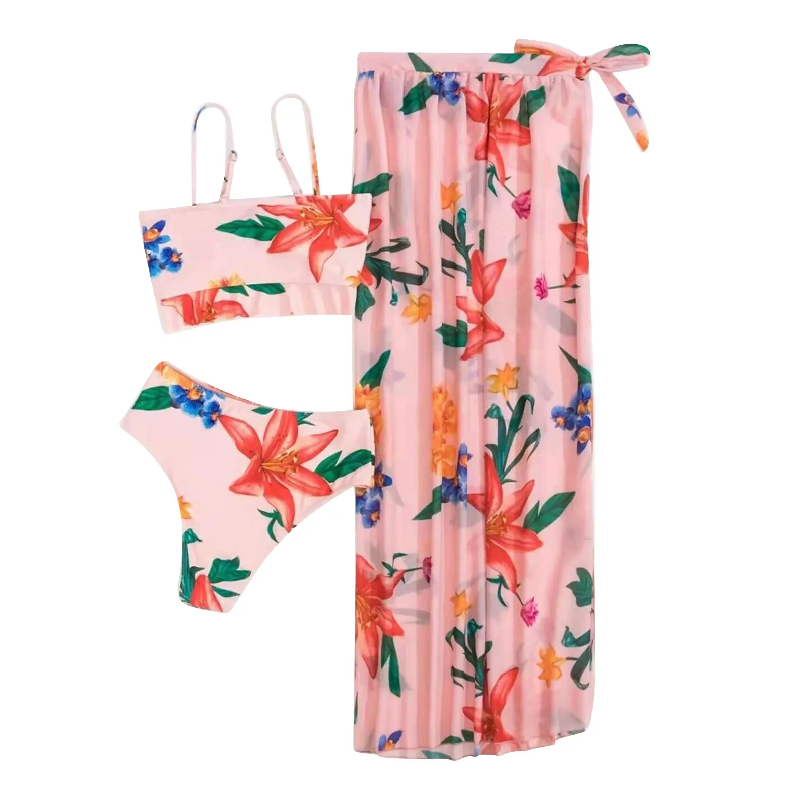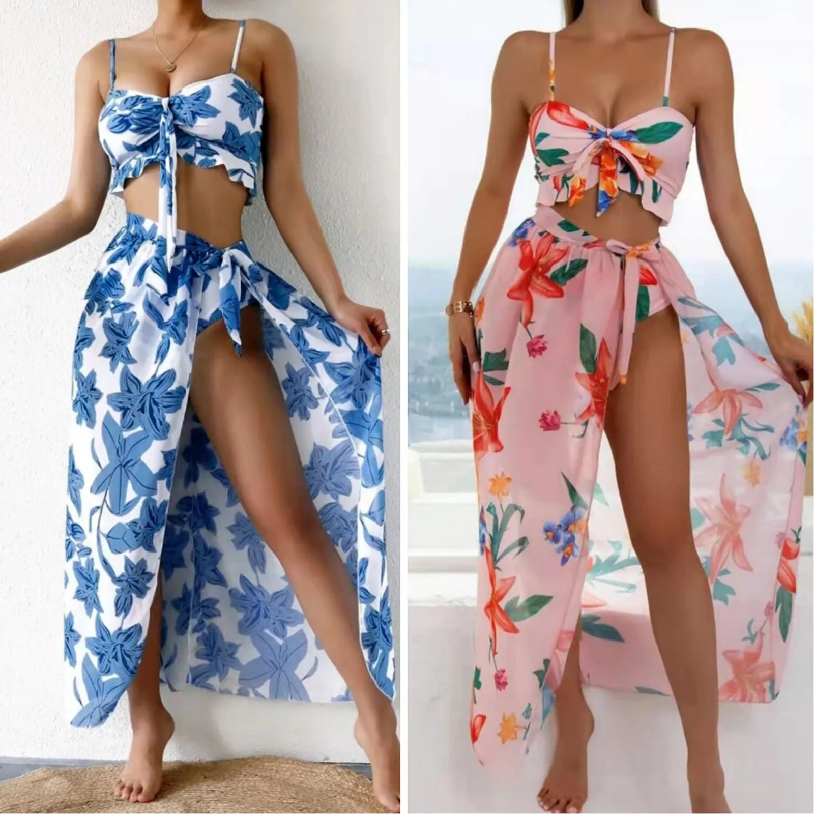 Fashion Women Printed High Waist Split Long Skirt Bikini Casual Swimsuit Set
