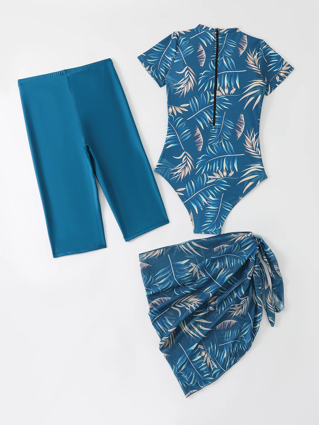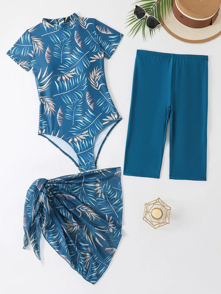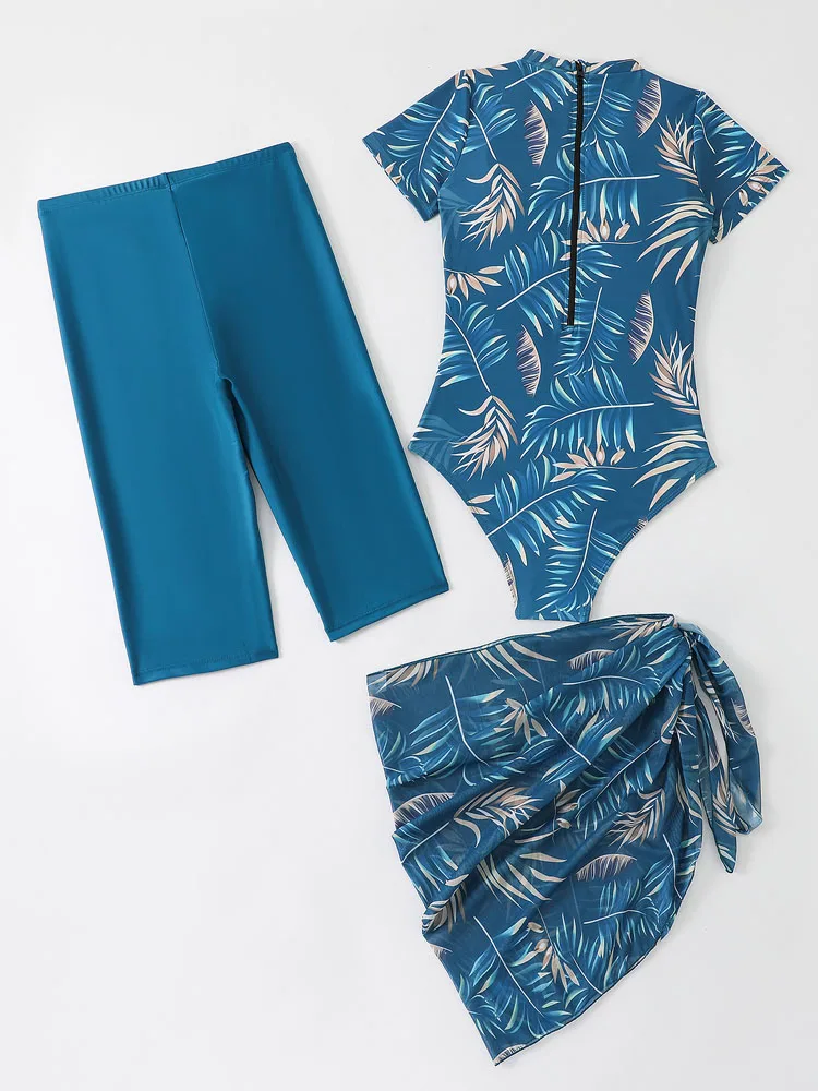 VigoBreviya Sexy Print 3 Piece Mesh Skirt Bikini Set Swimwear Women 2025 Short Sleeve Swimsuit High Waist Backless Bathing Suit