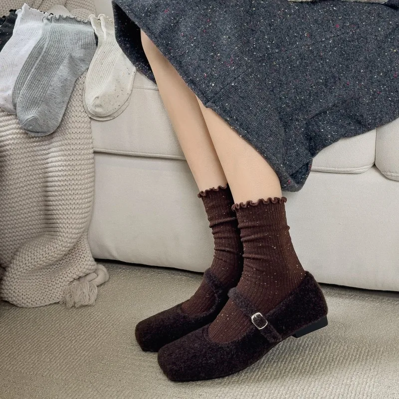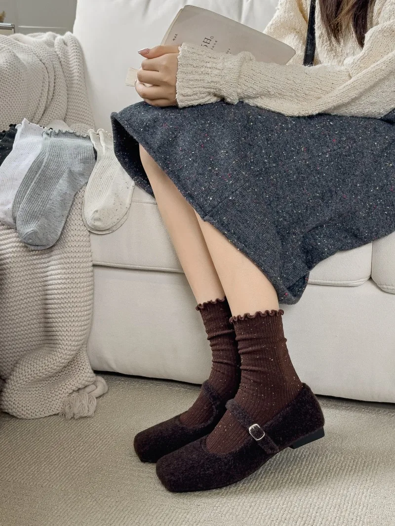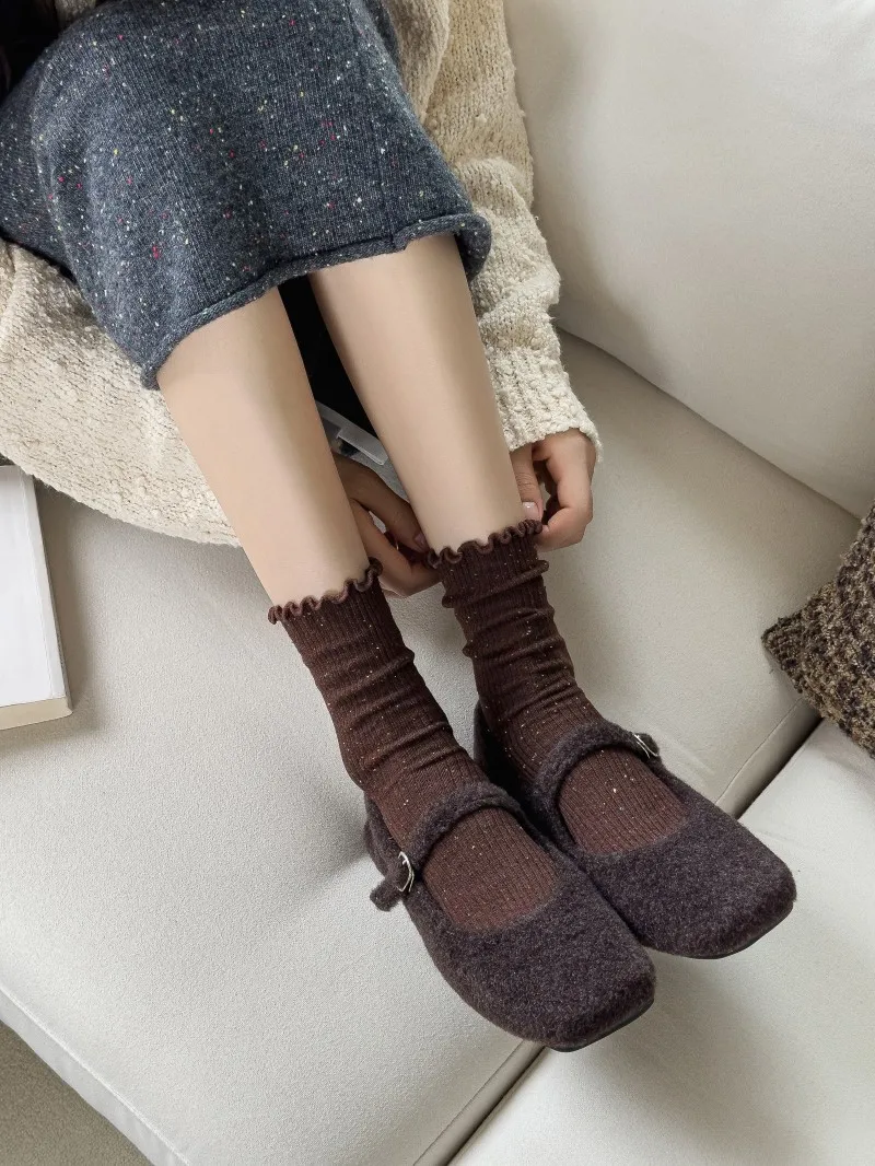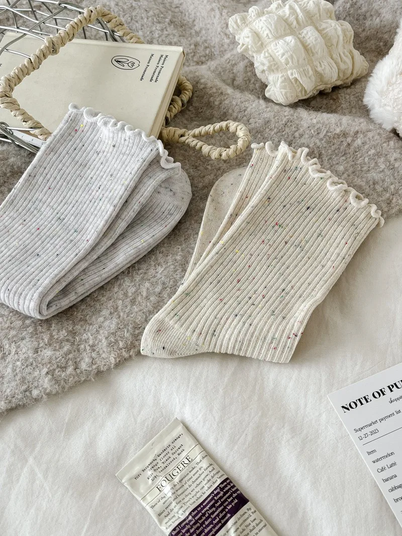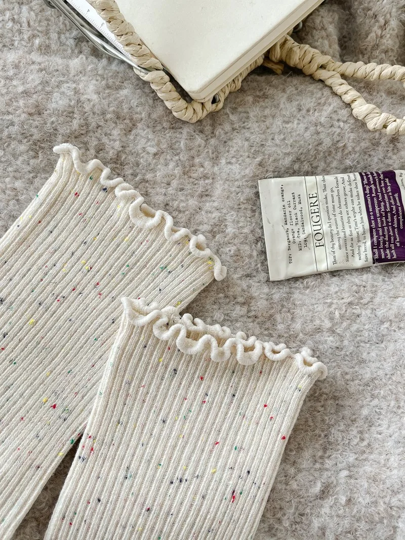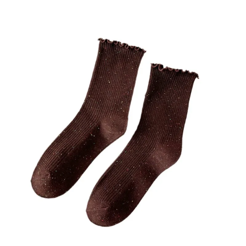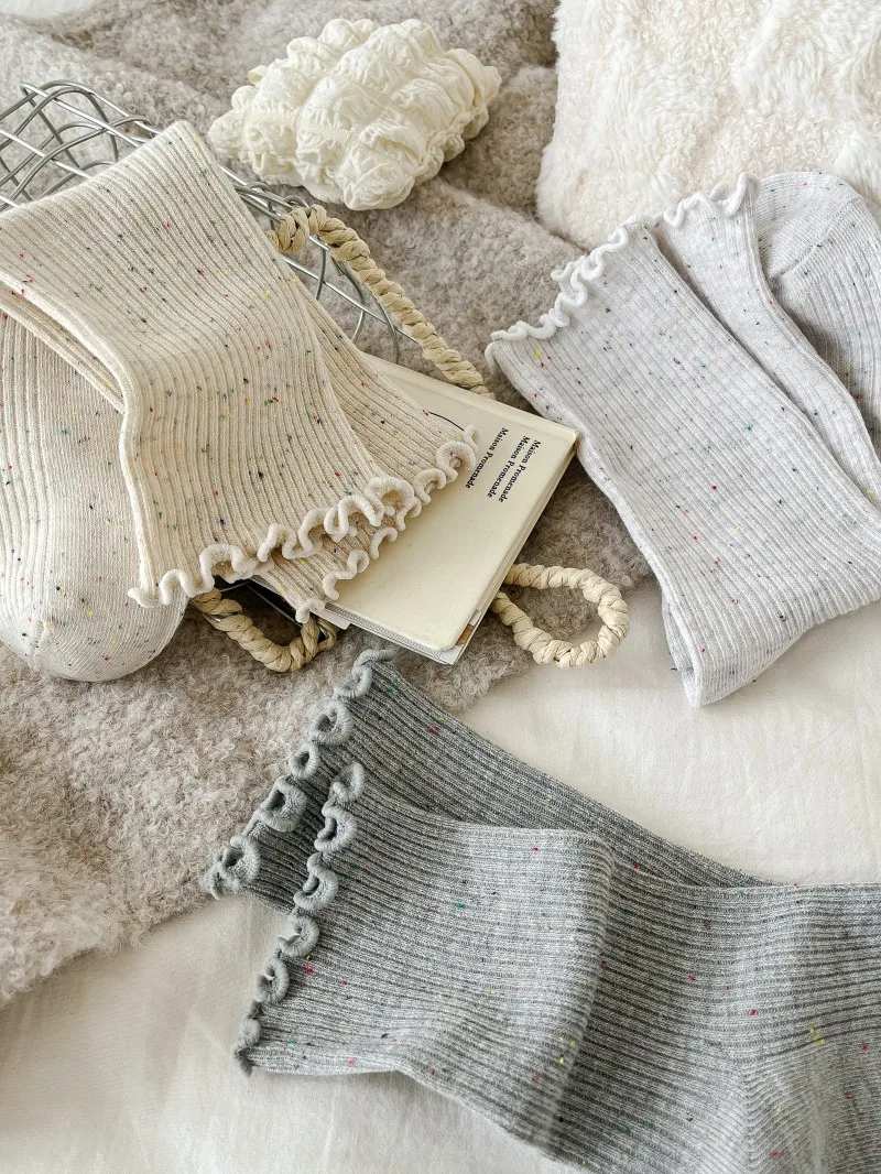 Woman Socks Autumn Winter New Solid Color Retro Frilly Ruffle Socks Female Casual Daily Preppy Style Japanese Crew Socks Girls