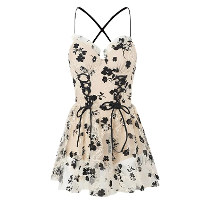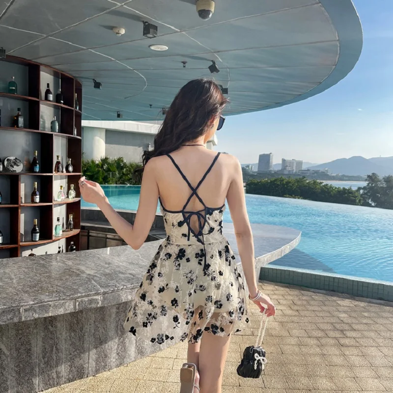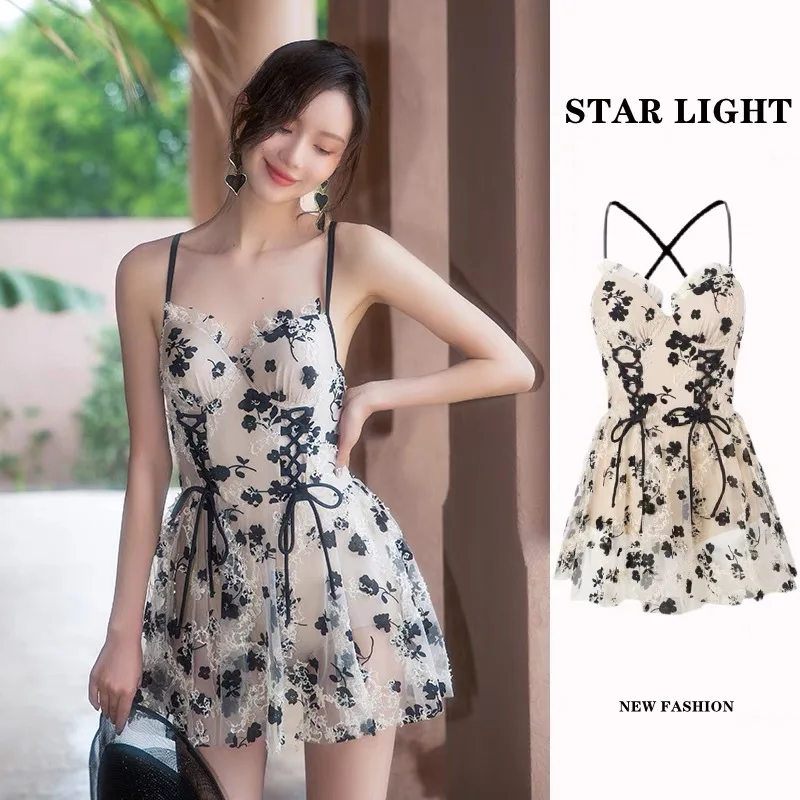 Women One Piece Swimsuit Spaghetti Strap Dress Style for Beach Pool Vacation Swimming Comfortable Quick Dry Durable Fabric Full