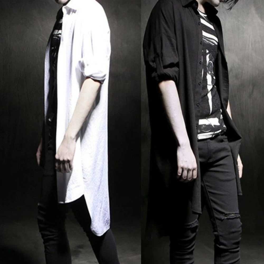 XS-5XL Mens Mid-Length Couple Casual Shirt Streetwear Fashion Korean Version Youth Campus Long-Sleeve Cape Cloak Shirt Mens wear