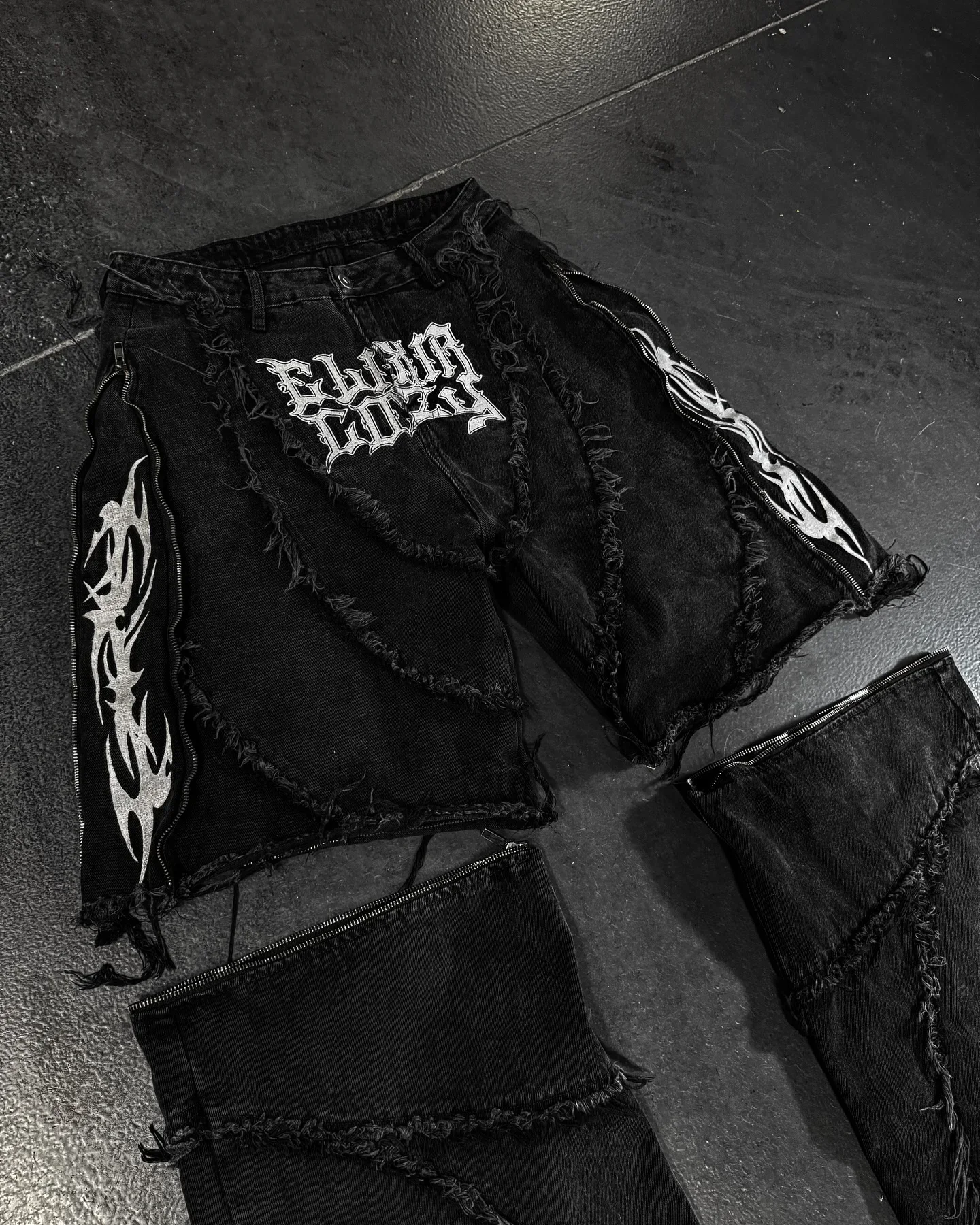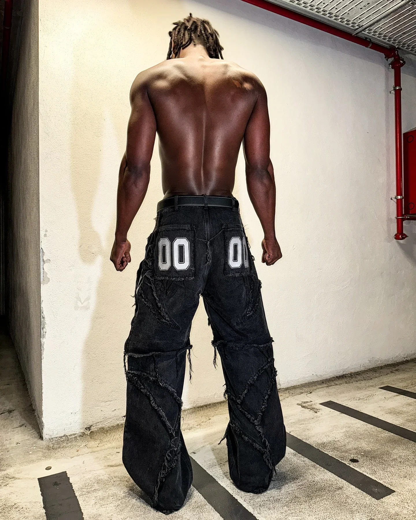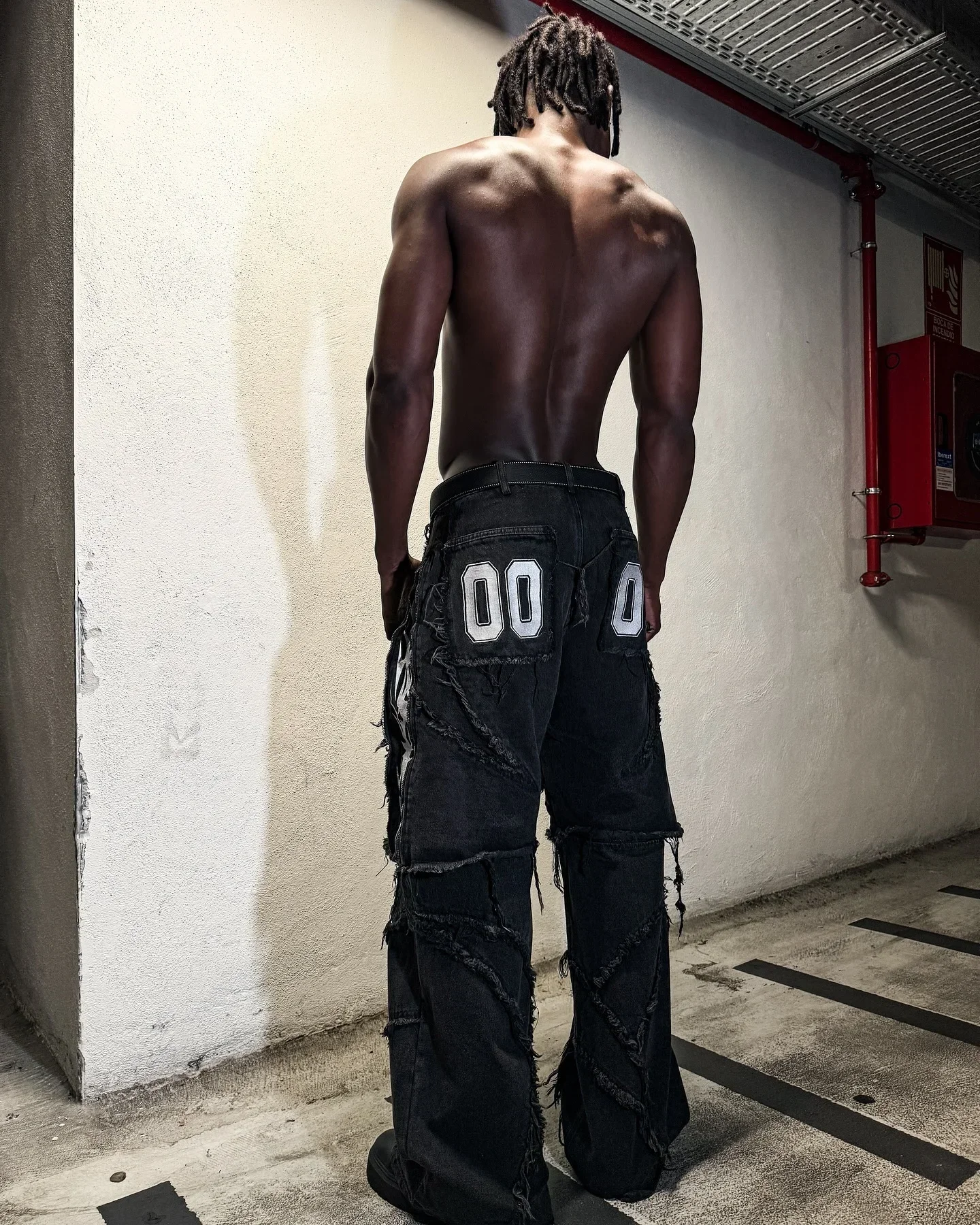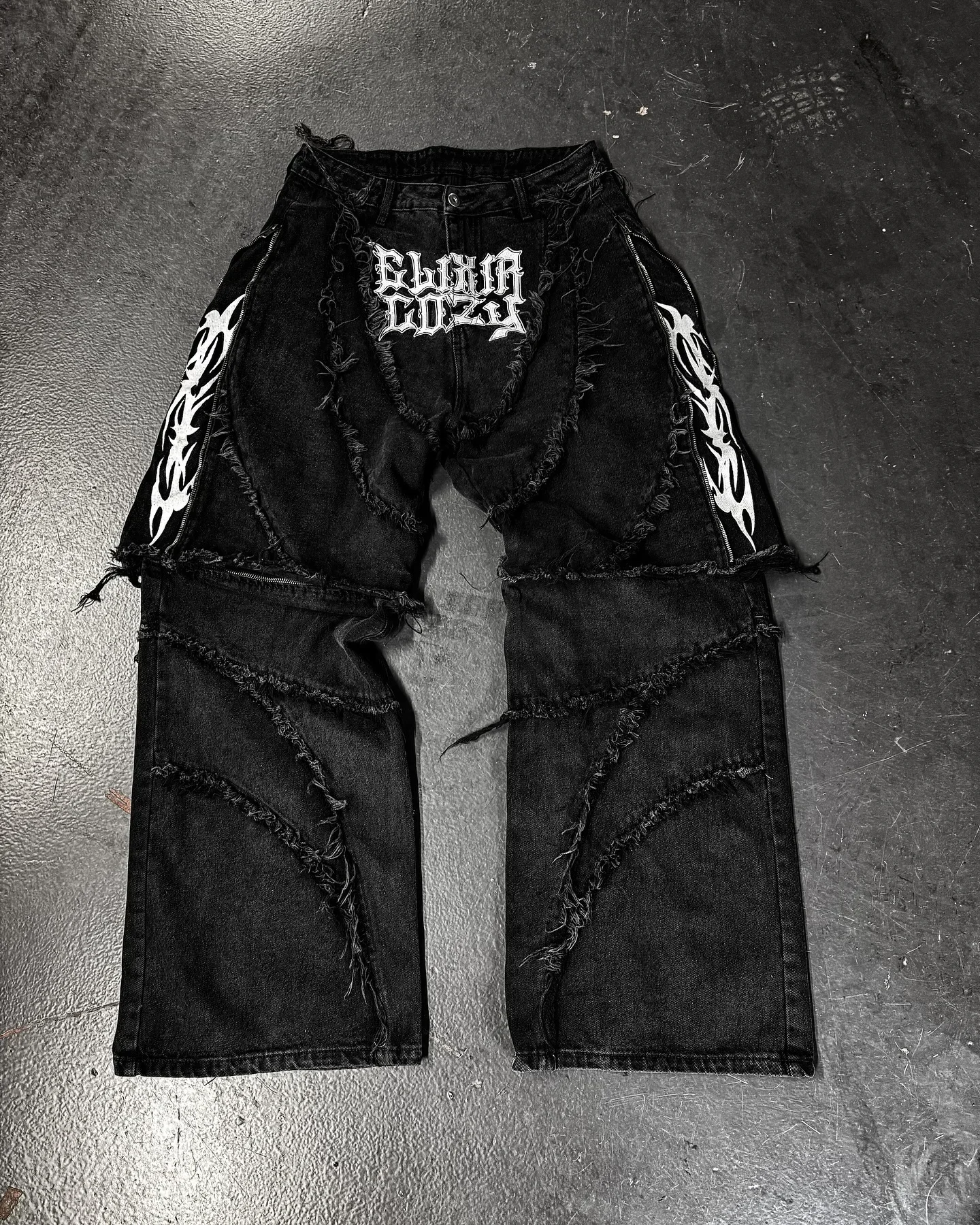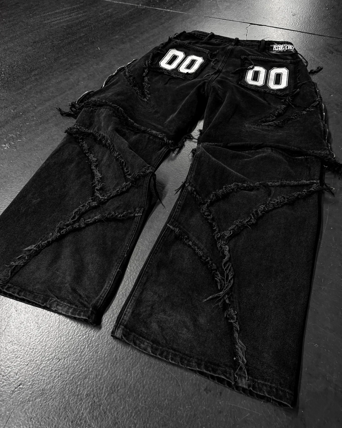 Y2k Patchwork Stripe Embroidery Fur Edge Jeans Fashion America Retro Zipper Splicing Baggy Jeans Punk Men Black Denim Pants